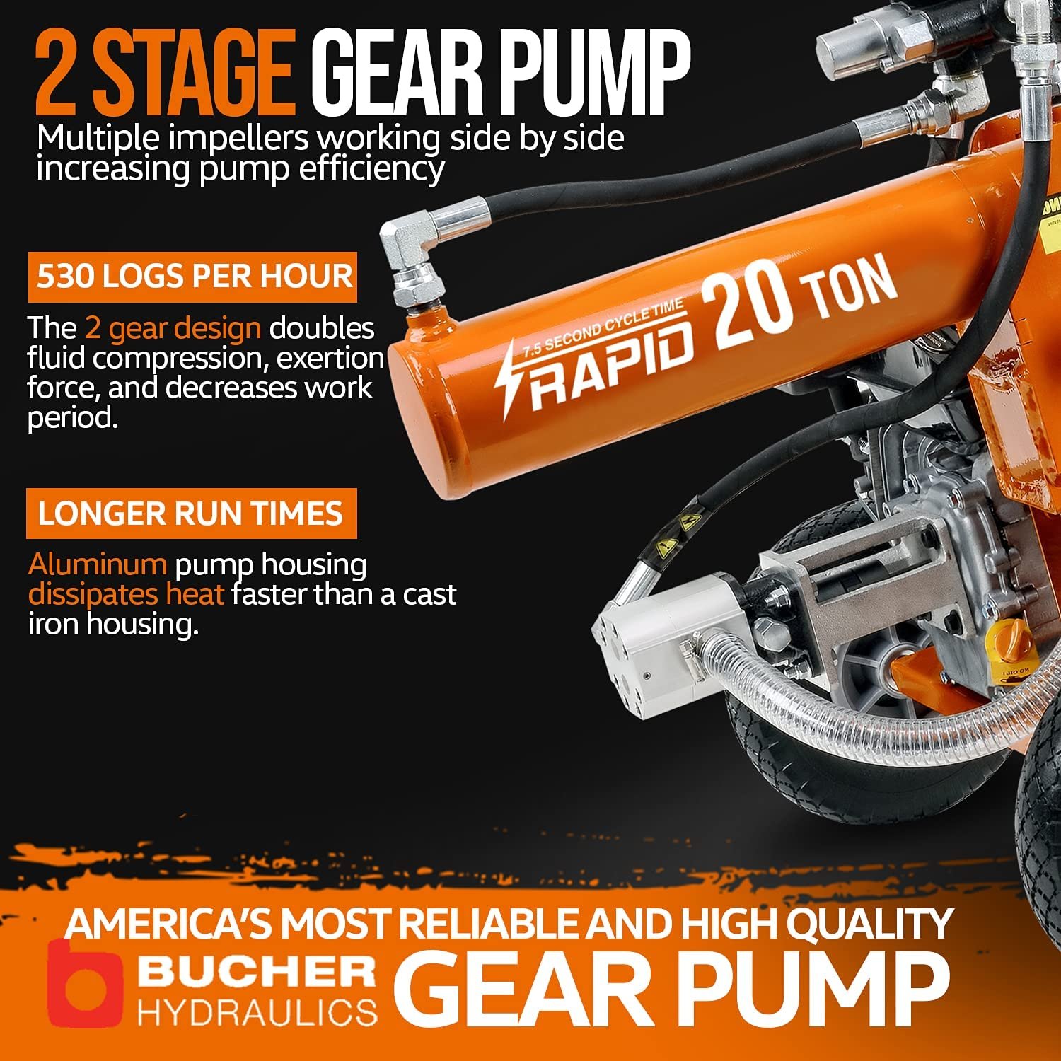 Built with a heavy duty Alphaworks 7HP gas motor, powering our 20-ton rated system, utilizes the highly ultra reliable and trusted 2-Stage Bucher Hydraulic Gear Pump. With Rapid Auto Return that easily splits logs up to 20.5″ inches in length and up to 16″ inches in diameter; All weighing 130 lbs. (58.96 kgs). Our lightweight horizontal full beam and steel wedge log splitter design is built to be portable with fast and easy set up for anywhere nature takes you; Complete with sturdy 10” inch wheels for transport, allowing for smooth maneuvering for easy transportation from site to site.